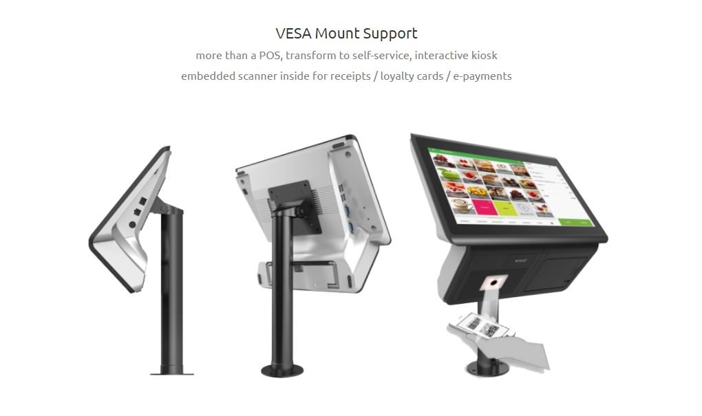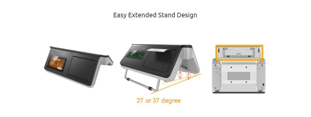 PSL-540 Stylish AIO POS Terminal 14″ all-in-one fully integrated POS system with printer Features Specification Design Download Features 14”LED backlight panel with bezel-free capacitive touchLow power consumption Celeron N3160 1.6Ghz processorEasy extended stand designFanless designIP64 on front bezelBuilt-in 3”easy removable thermal printerVersatile peripheral 4.3”2nd display, VFD, RFID, WiFi+BT, 4G LTE Specification * Specifications subject to change without notice. Design Download Product Datasheet: PSL540 celeron Datasheet BACK